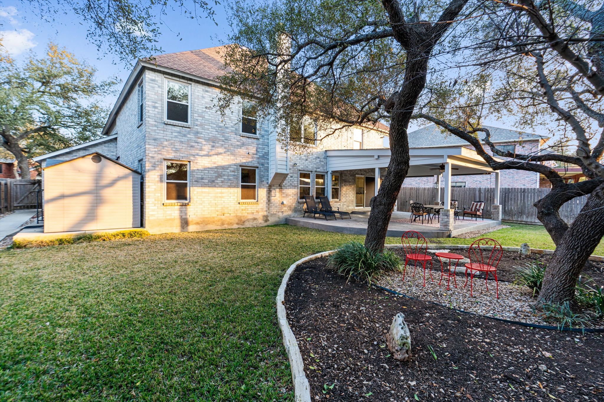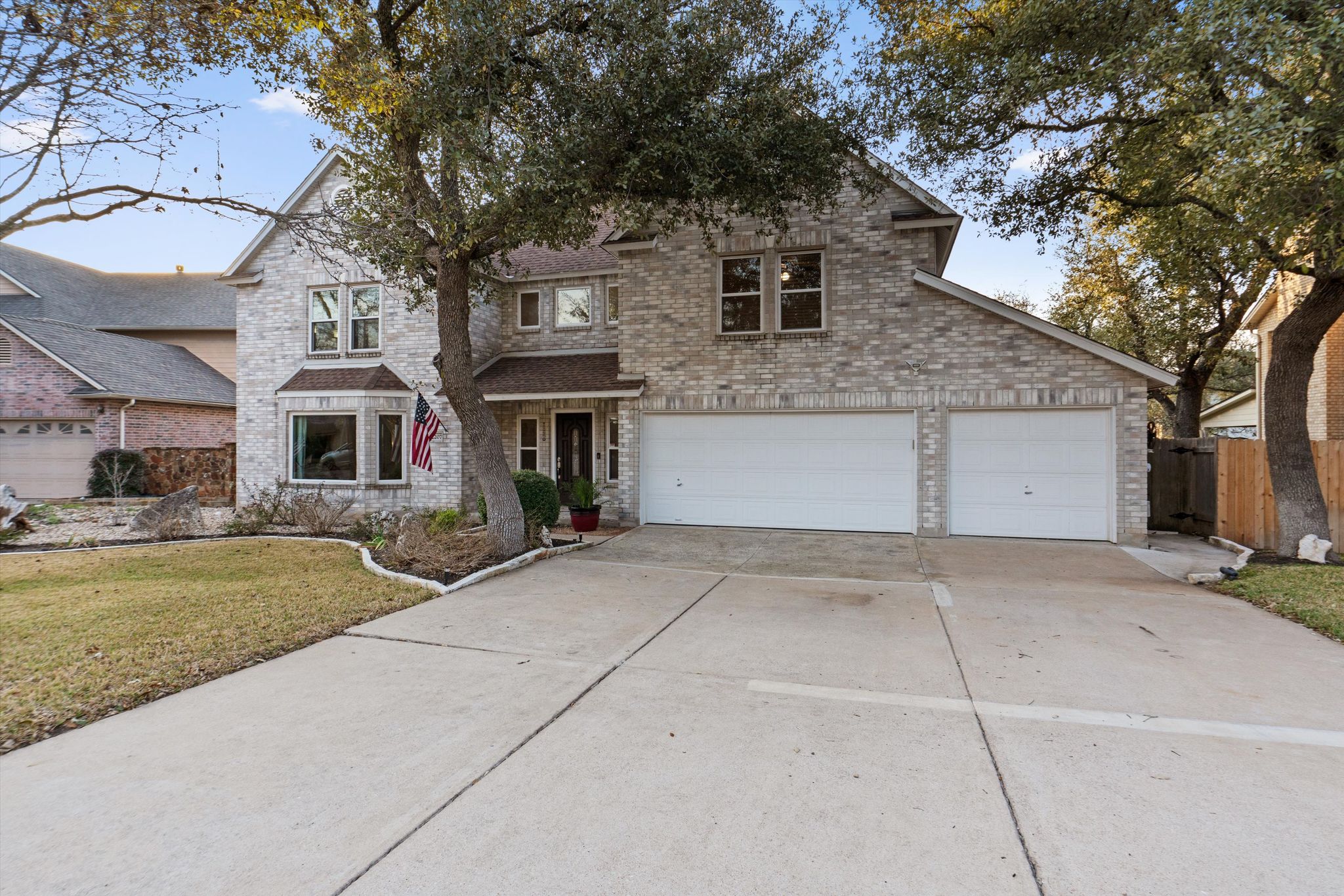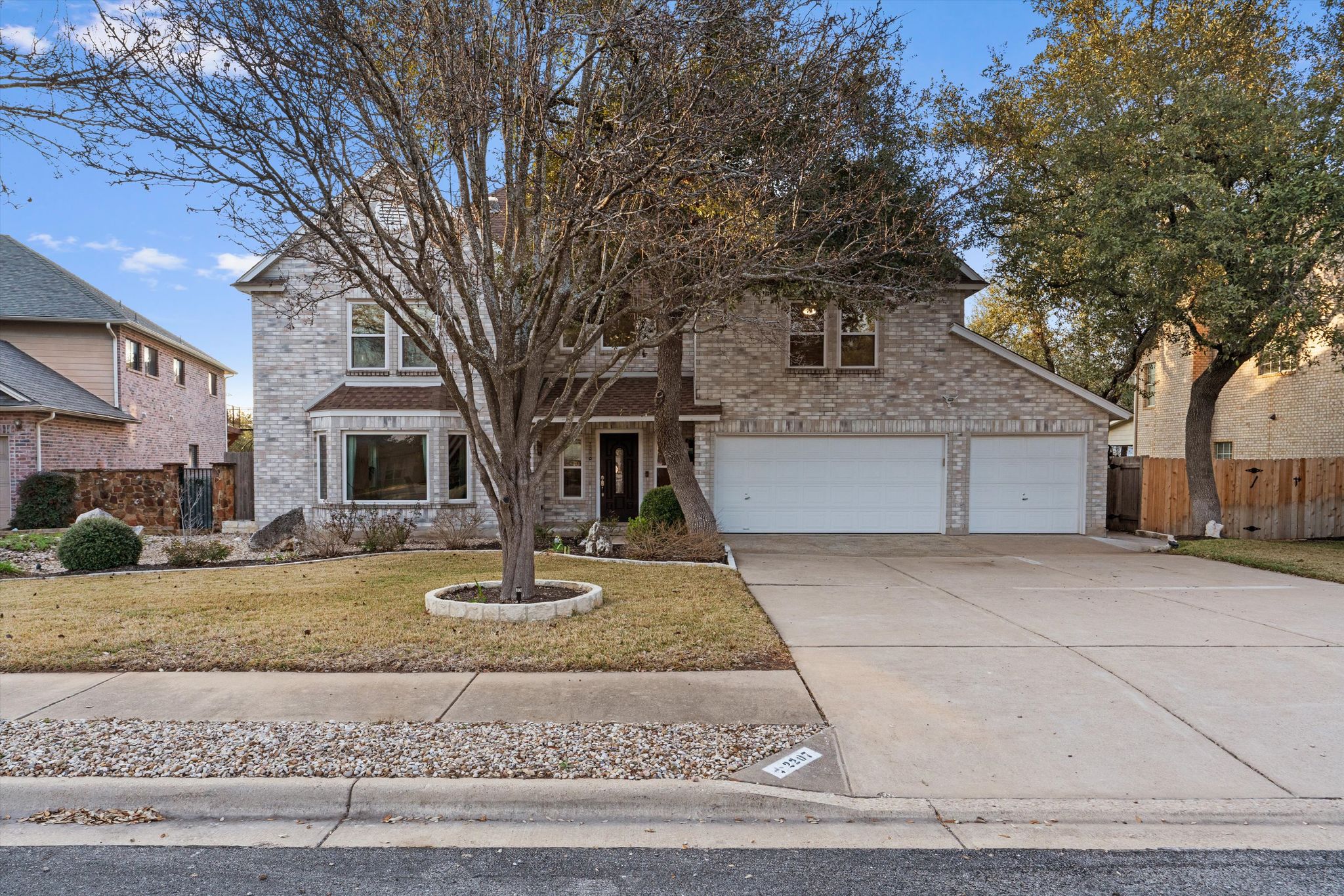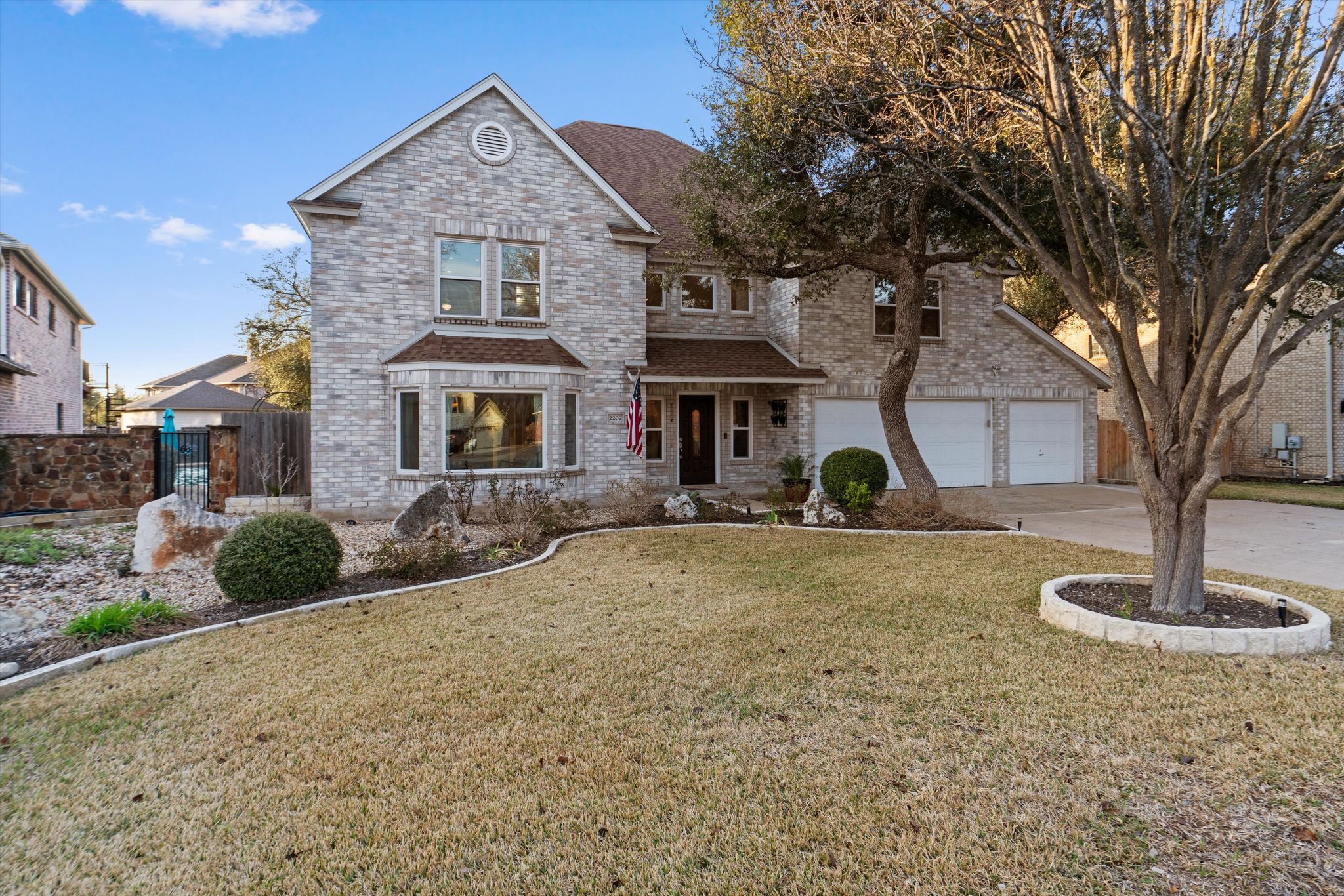 2207 Flaming Tree Ct is a rare find nestled on a serene cul-de-sac shaded by mature trees. Located in the heart of Cedar Park, a stone's throw from essential local amenities. Grocery stores, restaurants, and coffee shops are all within a few minutes.  Shopping and fun entertainment options are all close by.